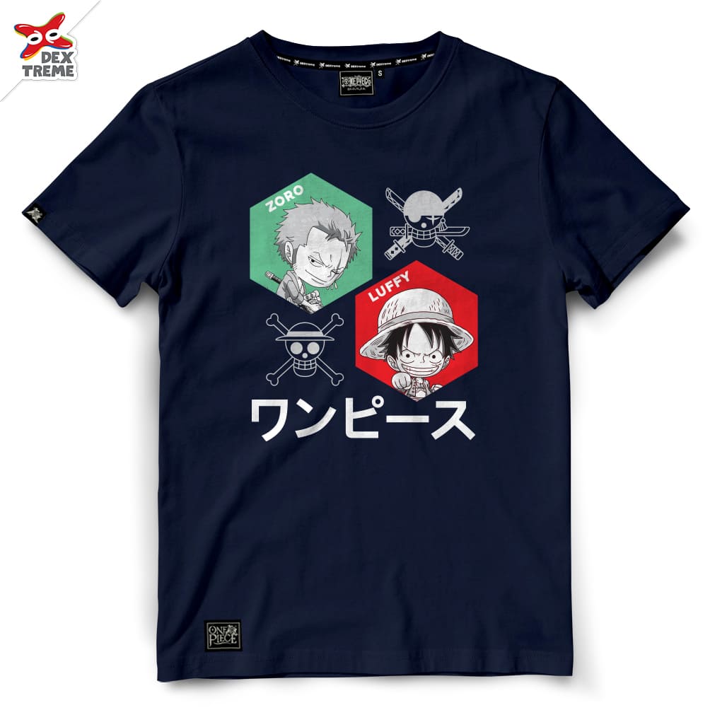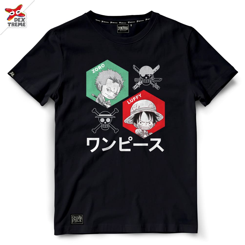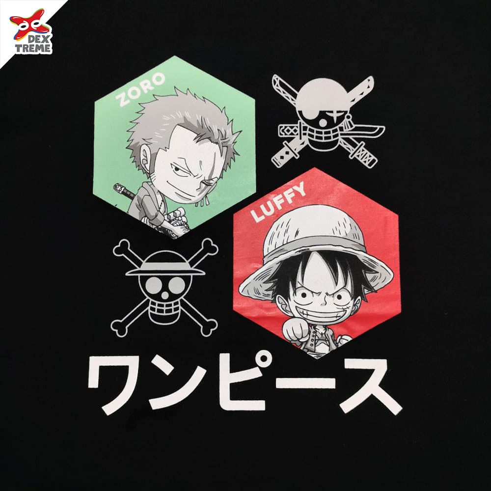 Dextreme T-shirt DOP-1550 One Piece ลาย SD Luffy Zoro มีสีดำ และสีกรม